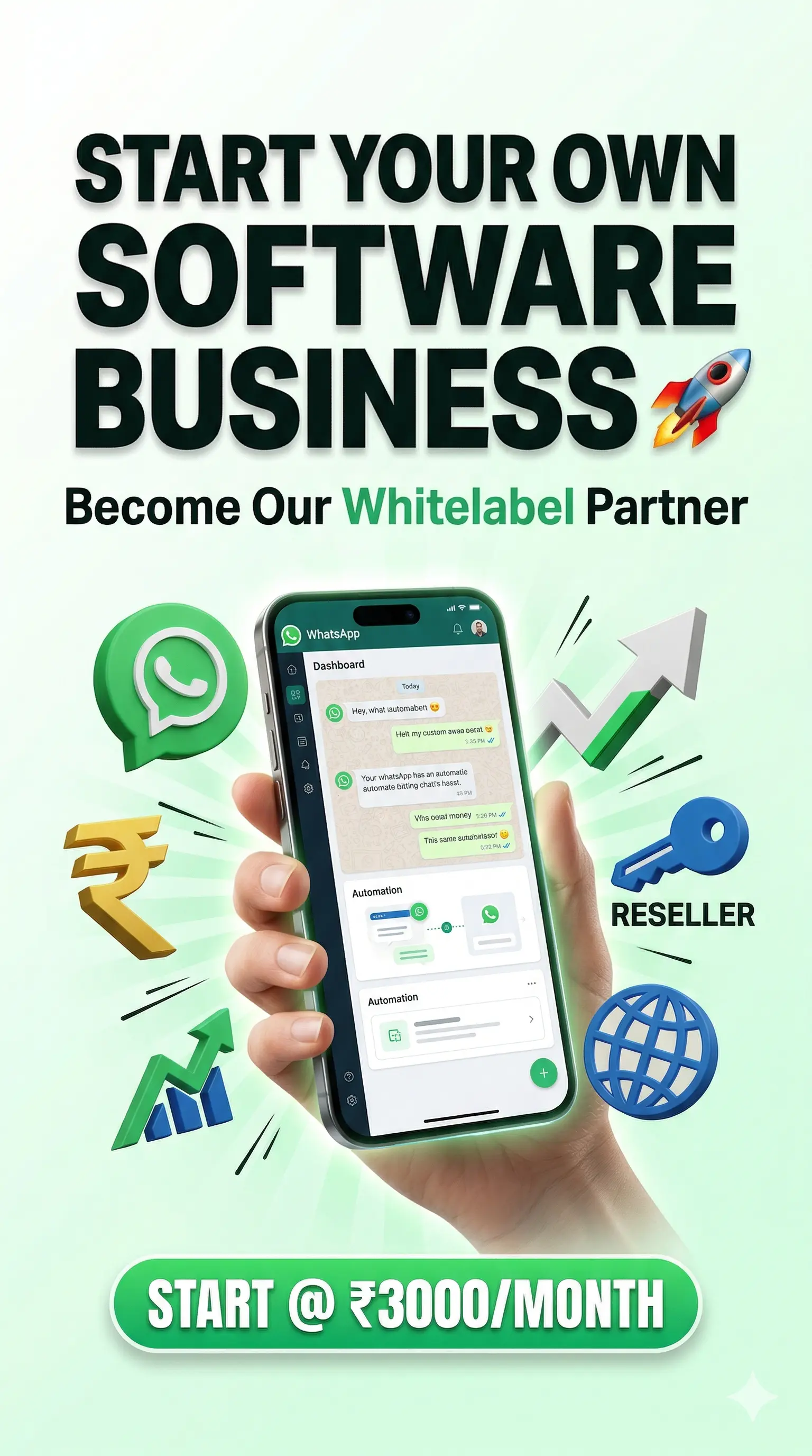 Starting a software company doesn't require huge investment anymore. With WappBlaster's whitelabel reseller program, you can start your own software business with as low as ₹750 (cost of 1 license). No office, no developers, no infrastructure needed - just buy and resell!